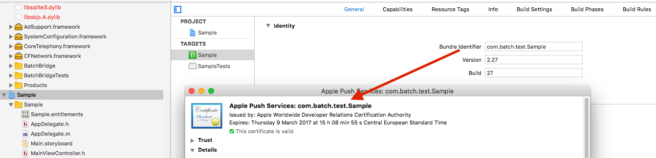 You will need to generate a [new .p12 certificate](https://doc.batch.com/developer/sdk/ios/advanced/general#generating-the-.p12-certificate) or, in case you are using a [.p8 file](https://doc.batch.com/developer/sdk/ios/prerequisites#configuring-notifications), double-check the appID/bundleID you are using on Batch's dashboard *(Settings → Channels → Push → Push configuration → APNS)*.