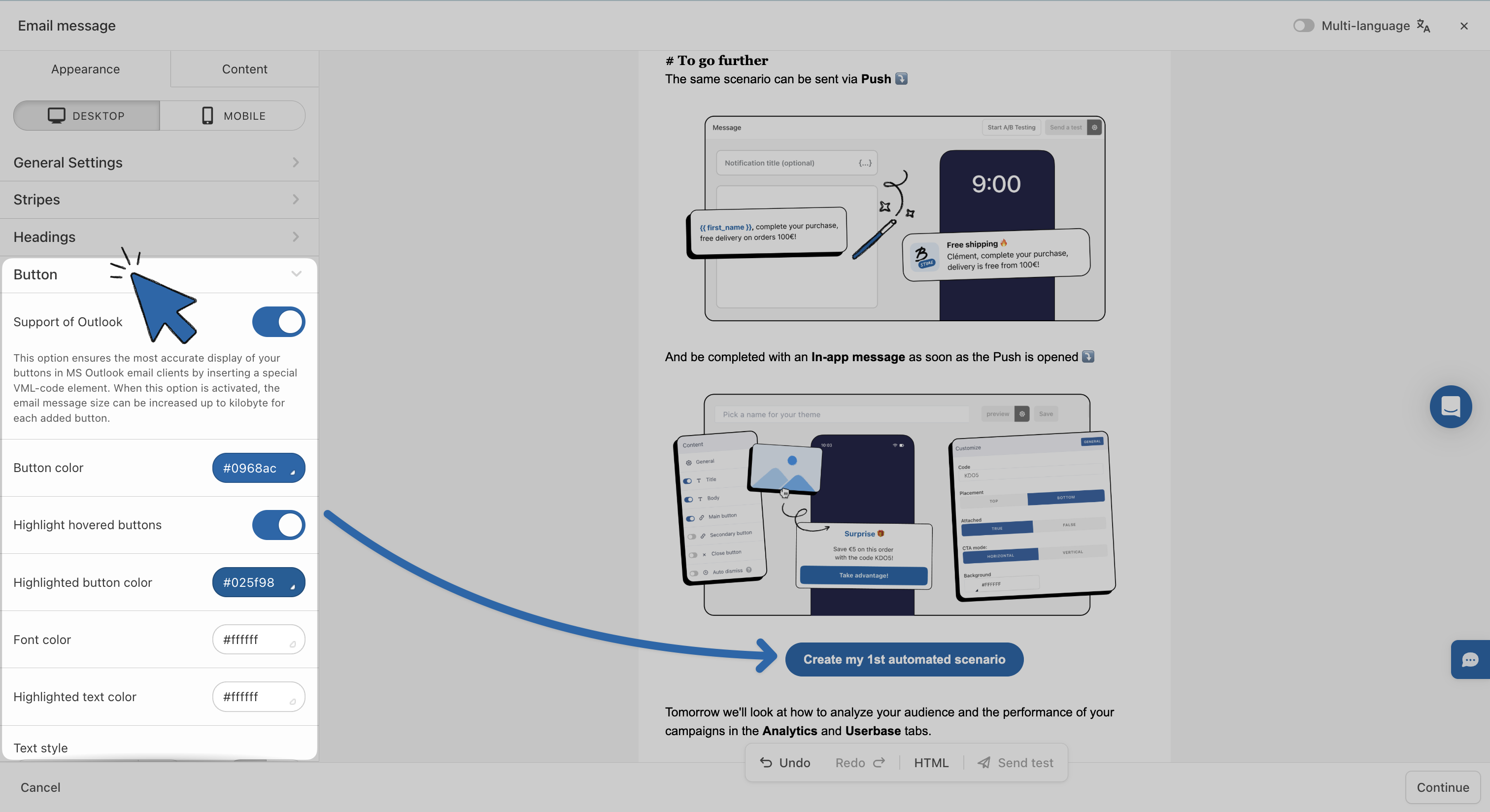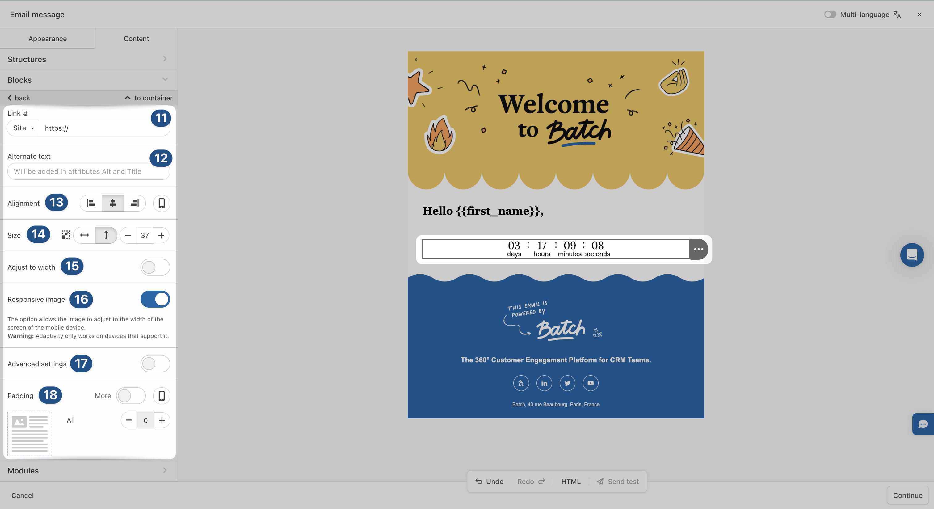 10. Manage **responsive design** (enabled by default, so your emails look great on both desktop and mobile).