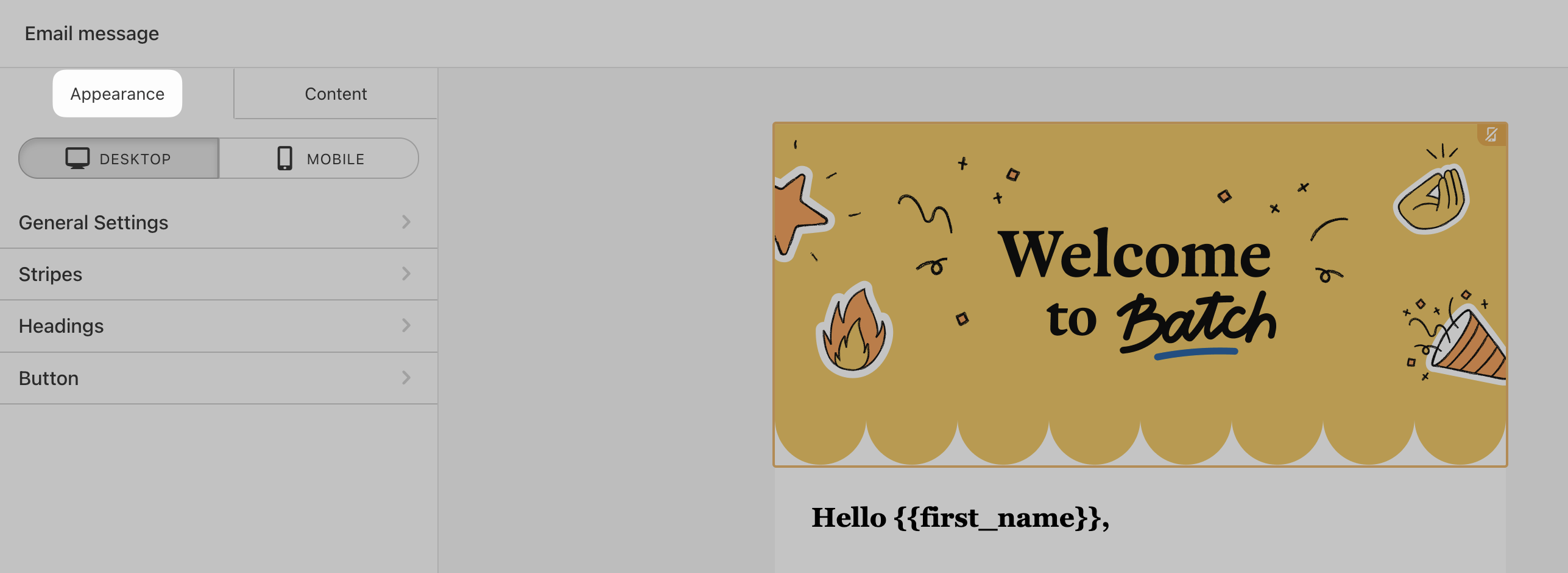 Let’s start with the **Appearance menu**. Why? Because the styles you define here will apply to your entire email 💪