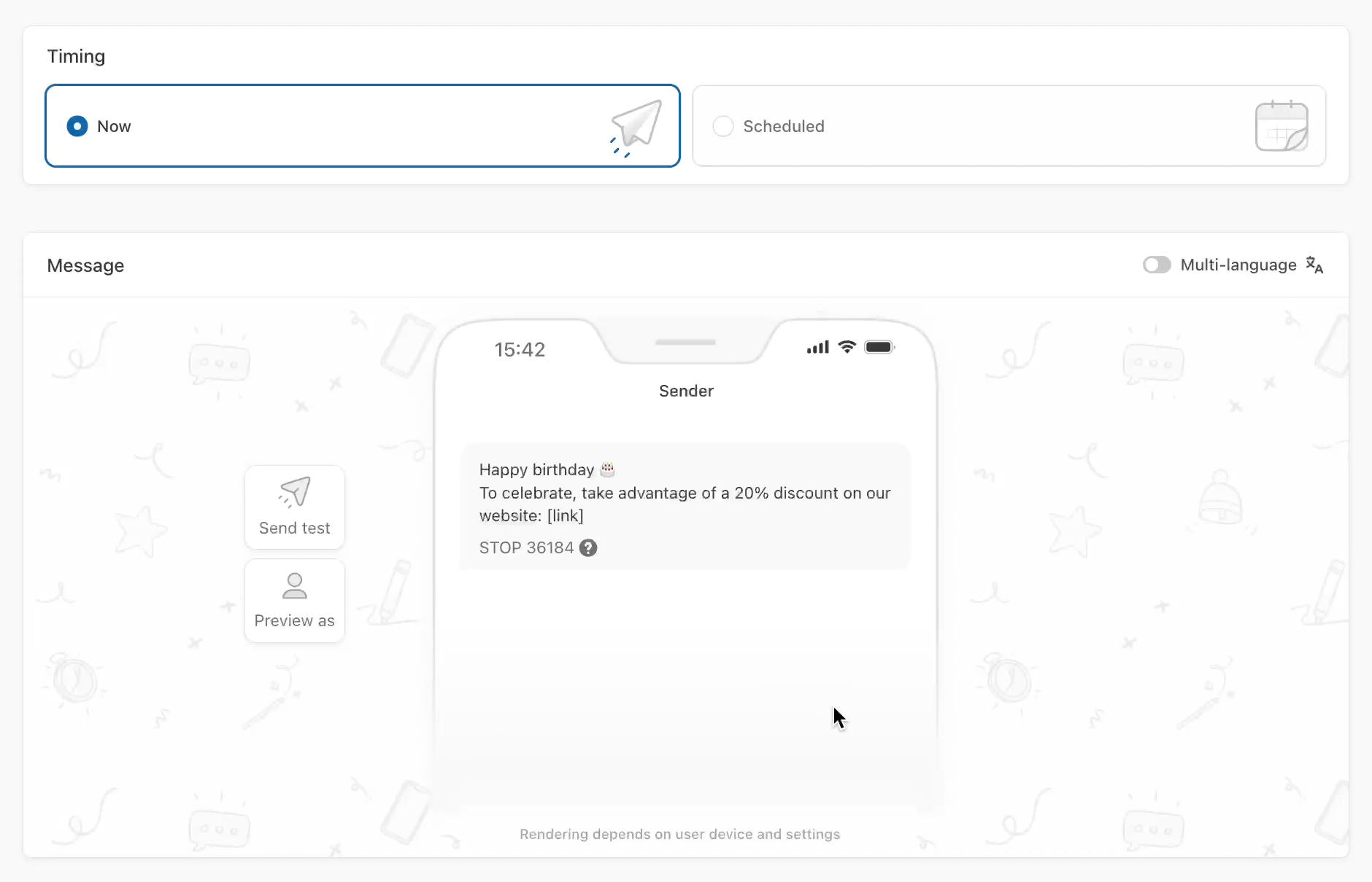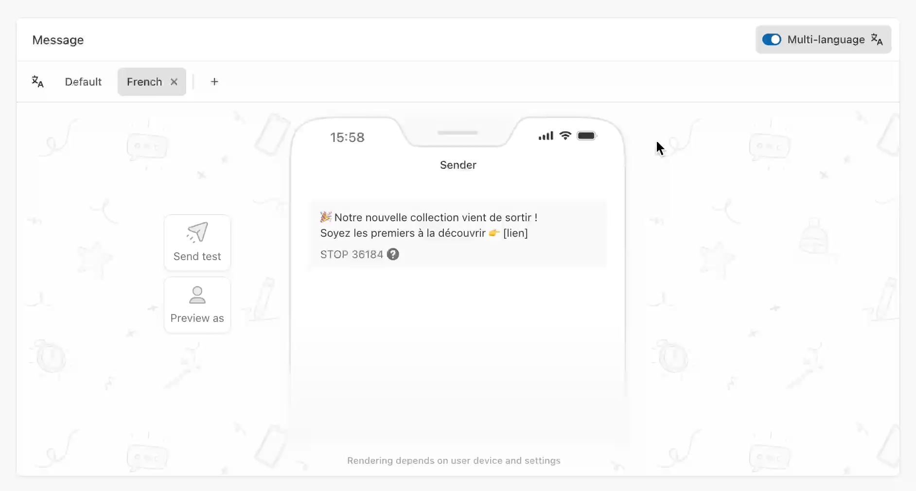 Adding personalization to your SMS feel more relevant and create a sense of direct communication with the user. Make your message feel personal by [inserting variables](https://doc.batch.com/getting-started/features/customer-engagement-platform/message/personalization)!